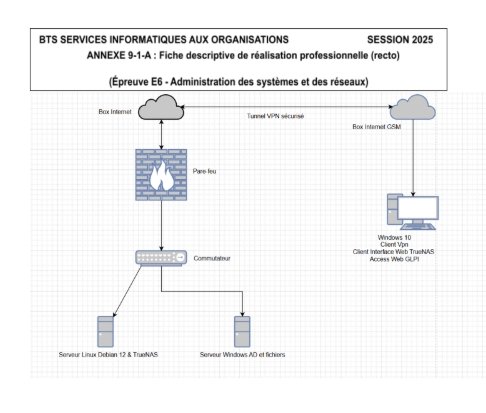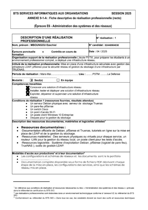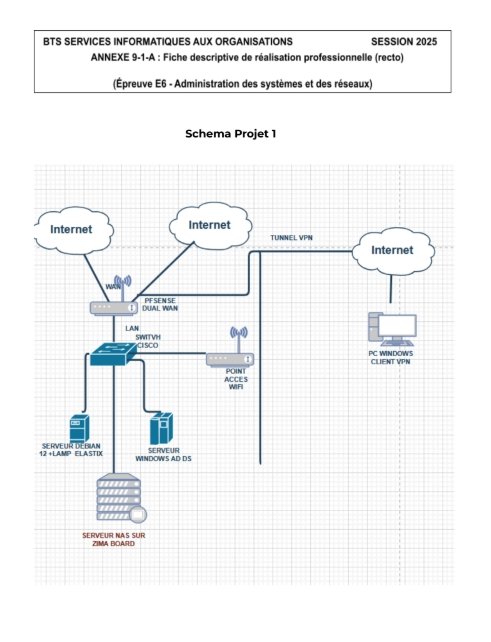 🎓 Cette page présente les projets que j’ai réalisé dans le cadre de l’épreuve E5 du BTS SIO (option SISR). Cela illustre mes compétences en administration réseau, cybersécurité et infrastructure.